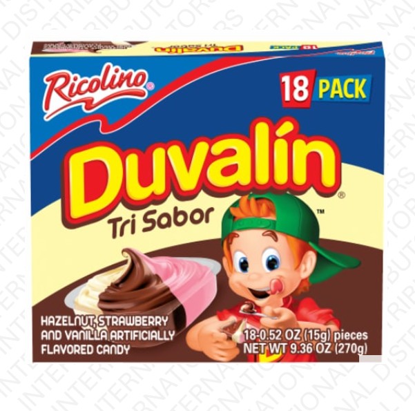 RICOLINO DUVALIN 3 SABORES 24/18ct Item#: 18764 Pack: 24 Class: Candy Weight...