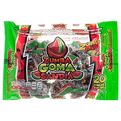 ZUMBA PICA GOMA SANDIA BAG 20/20ct Item#: 50411 Pack: 20 Class: Candy Weight PK(LB): 21