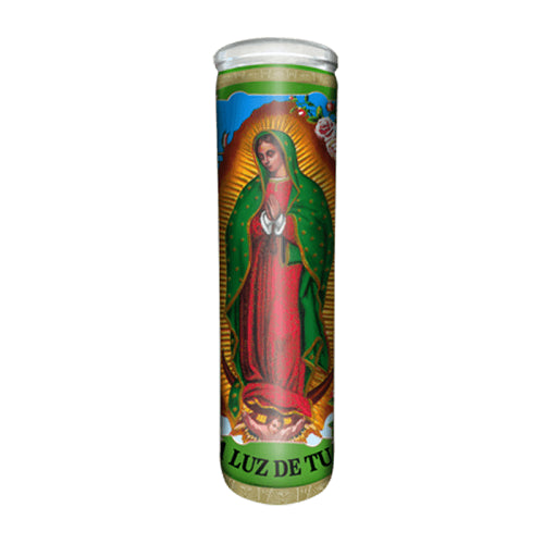 Item No.14710 VELADORA MEXICO VIRGEN DE GUADALUPE WHITE 12ct