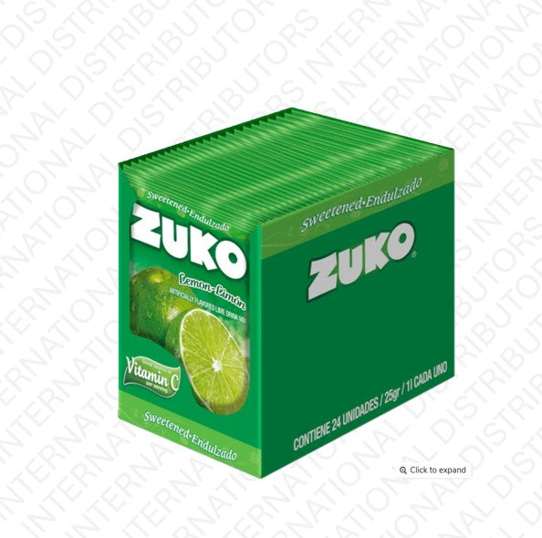 ZUKO IND PK LIME (LIMON) 4/24/0.9oz Item#: 33133 Pack: 24 Class: Drink Mixes & Powders Weight PK(LB): 6.6