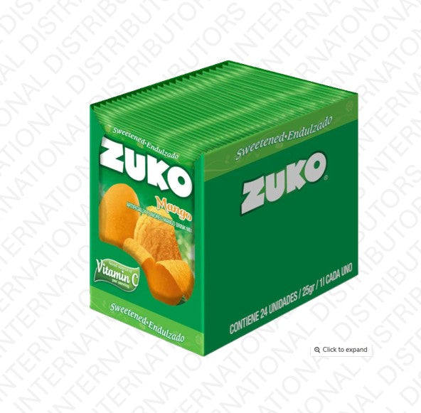 ZUKO IND PK MANGO 4/24/0.9oz Item#: 33134 Pack: 24 Class: Drink Mixes & Powders Weight PK(LB): 6.6