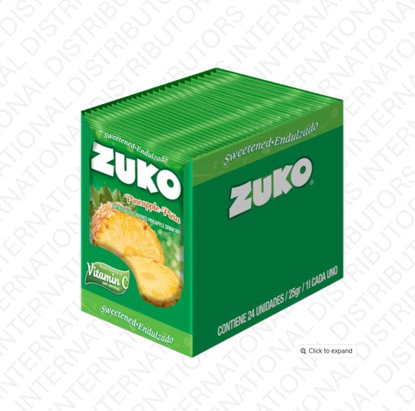 ZUKO IND PK PINEAPPLE 4/24/0.9oz Item#: 33136 Pack: 24 Class: Drink Mixes & Powders Weight PK(LB): 6.6