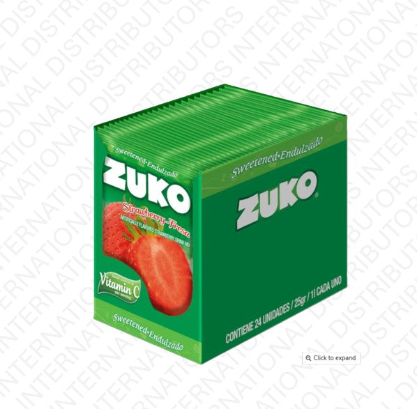 ZUKO IND PK STRAWBERRY 4/24/0.9oz Item#: 33137 Pack: 24 Class: Drink Mixes & Powders Weight PK(LB): 6.6