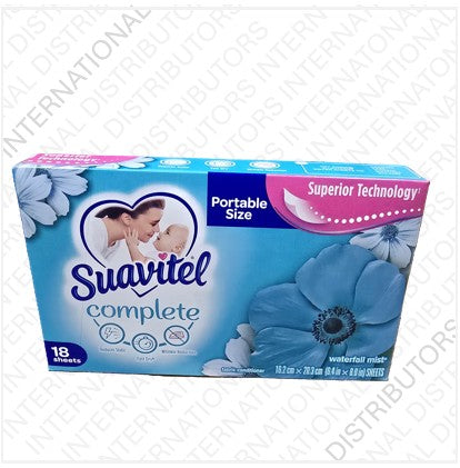 SUAVITEL DRYER SH WATERFALL MIST 15/18ct Item#: 10767 Pack: 15 Class: Detergent Weight PK(LB): 2