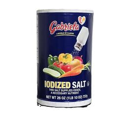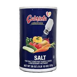 GABRIELA SALT IODIZED 24/26oz Item#: 50209 Pack: 24 Class: Seasoning & Sauce Weight PK(LB): 43