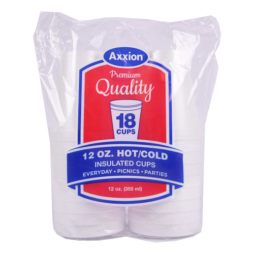 AXXION FOAM CUPS 12oz 18/18ct Item: 44653 Pack: 18 Class: Non Food Weight PK(LB): 4.05