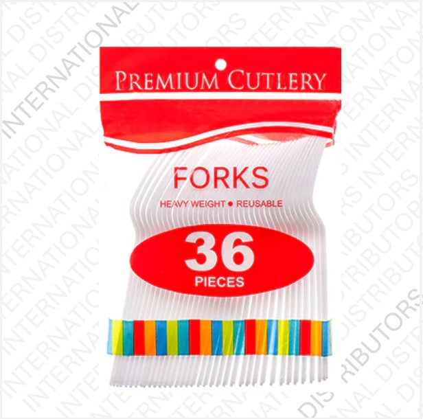 PREMIUM CUTLERY PLASTIC FORK WHITE #8200 36/36ct Item#: 16809 Pack: 36 Class: Utensils Weight PK(LB): 6.6