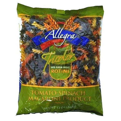 ALLEGRA ROTINI TRICOLOR 12/12oz Item#: 31261 Pack: 12 Class: Food Weight PK(LB): 10