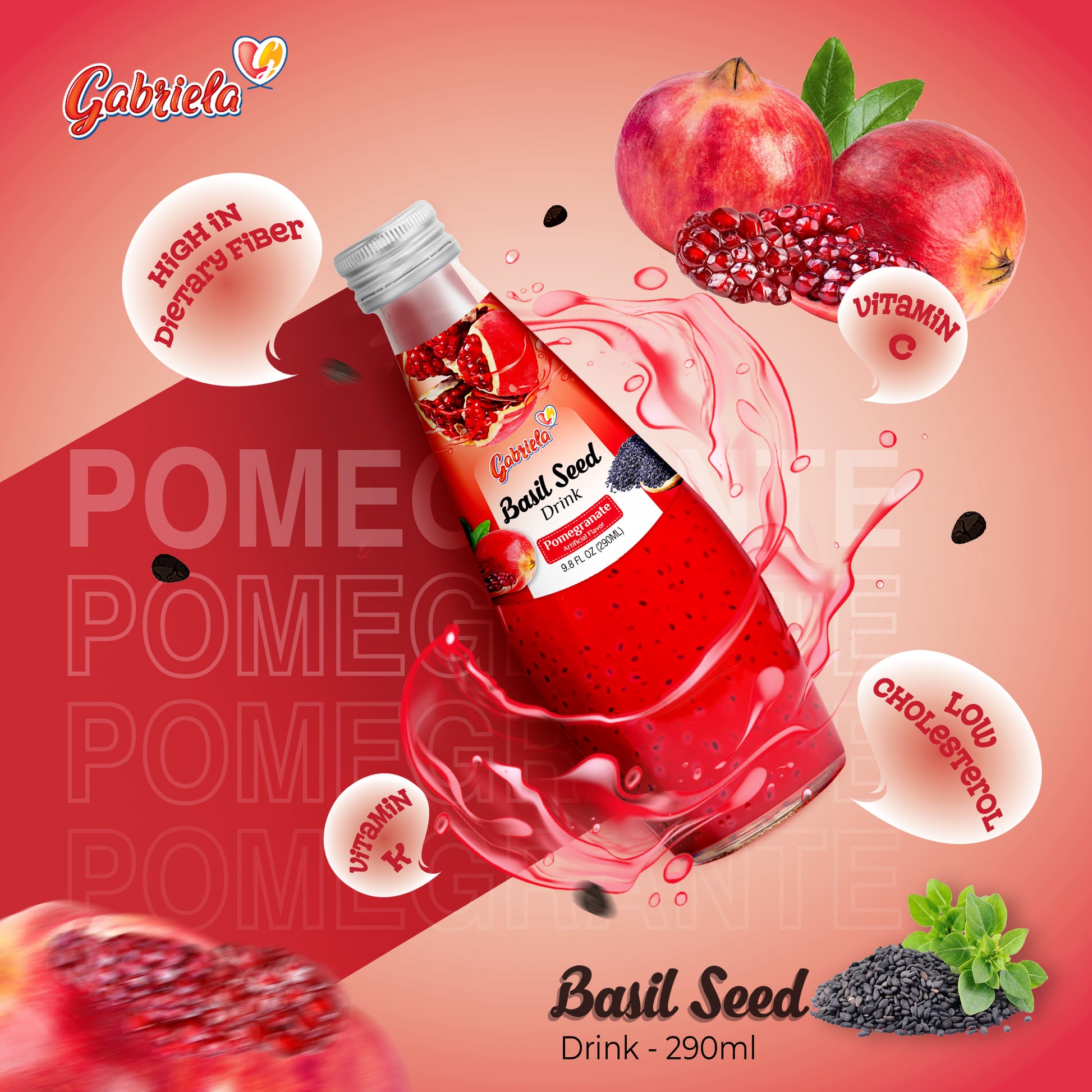 GABRIELA BASIL SEED DRINK POMEGRANATE 24/9.8oz + CRV